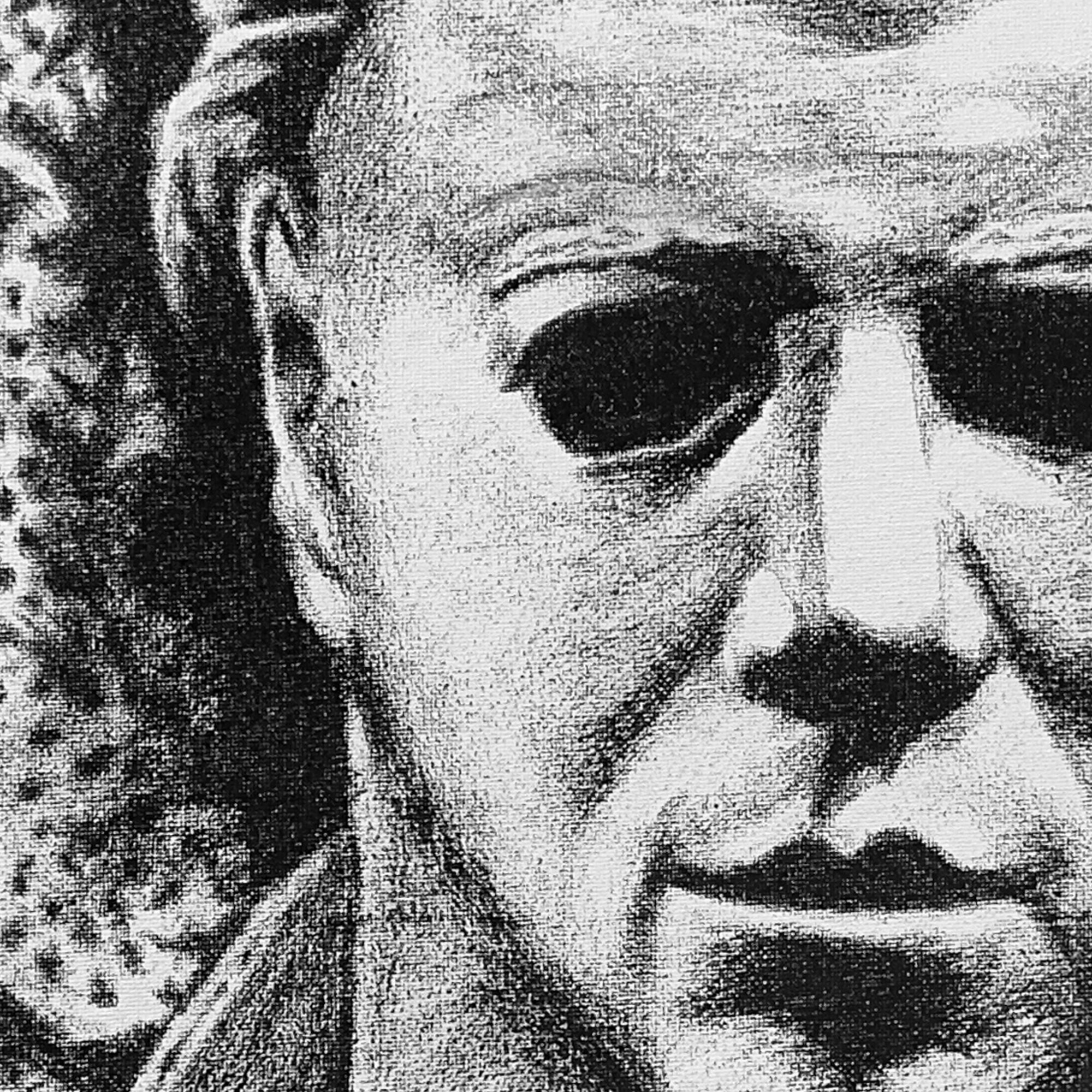 Face the shape of horror himself with Michael Myers from Hugo Bravo’s “Reflections of Rage” Series. This 18"x24" canvas print recreates the original charcoal pencil artwork on canvas, filled with chilling shadows and eerie realism.